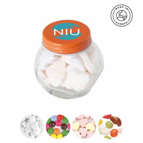 Made in Europe: vasetto in vetro con coperchio metallico.
