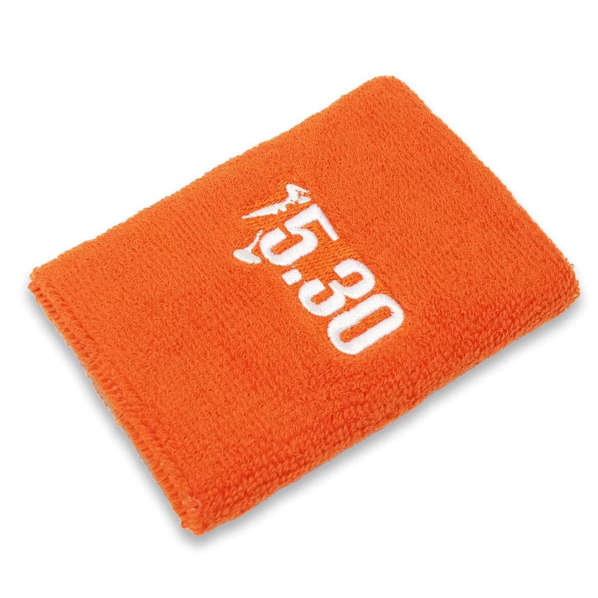 Polsino da running personalizzato, in dimensione di 12 x 8 cm, realizzato in spugna di cotone elasticizzata con ricamo frontale.