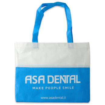 Anche in questo caso ci troviamo di fronte ad una shopper prodotta ad hoc. Oltre a scegliere il colore del TNT, è possibile stampare su una area quasi illimitata perchè le personalizzazioni vengono fatte prima di confezionare la shopper. I costi di una stampa in produzione, rispetto a quelli al pronto, sono molto più contenuti.
