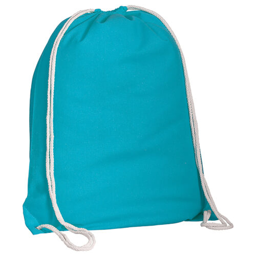 Drawstring zainetto realizzato in cotone colorato da 135 Gr/mq, con cordini bianchi e chiusura a strozzo. Angoli rinforzati