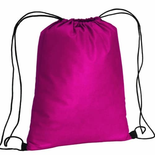 Drawstring zainetto realizzato in TNT colorato con cordini neri. Chiusura a strozzo e angoli con asola