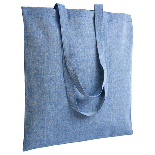 Shopper in cotone riciclato con effetto melange, con composizione di 96% cotone riciclato e 4% RPET. Dimensione di 38 x 42 cm, con manici lunghi. Personalizzabile in serigrafia fino a 6 colori per lato.