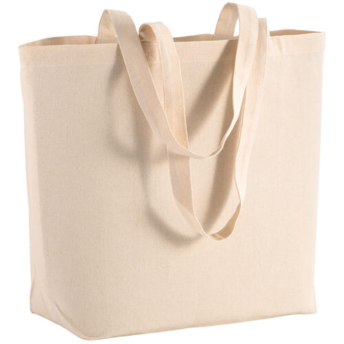 Shopper in 100% cotone da 135 Gr/mq. Dimensione di 50 x 38 x 15 cm, con manici lunghi. Personalizzabile in serigrafia fino a 6 colori per lato.