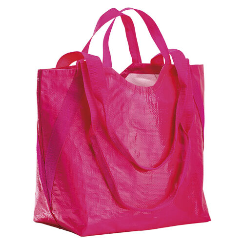 Shopper in Polipropilene laminato da 120 Gr/mq., con dimensione di 44 x 34 x 17 cm, con doppi manici sia lunghi che corti in poliestere. Personalizzabile in serigrafia fino a 3 colori