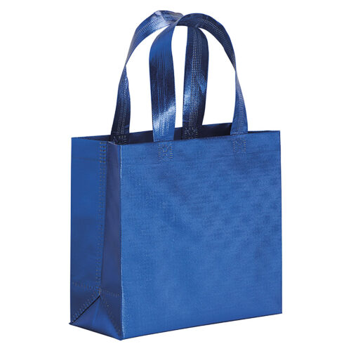 Shopper in TNT da 100 Gr/mq. laminato con effetto metallizzato, con dimensione di 25 x 23 x 10 cm, con manici corti. Personalizzabile in serigrafia fino a 3 colori